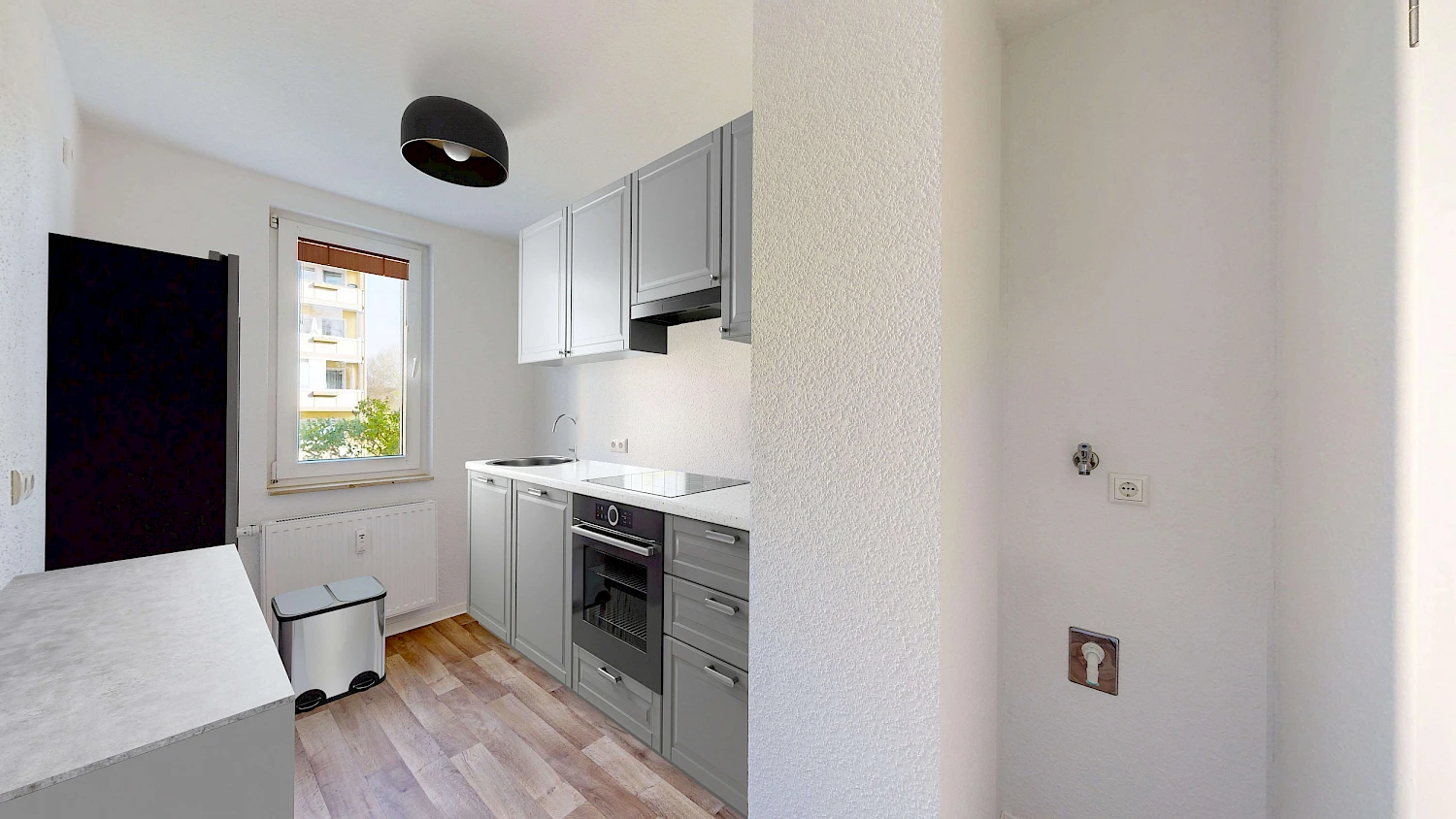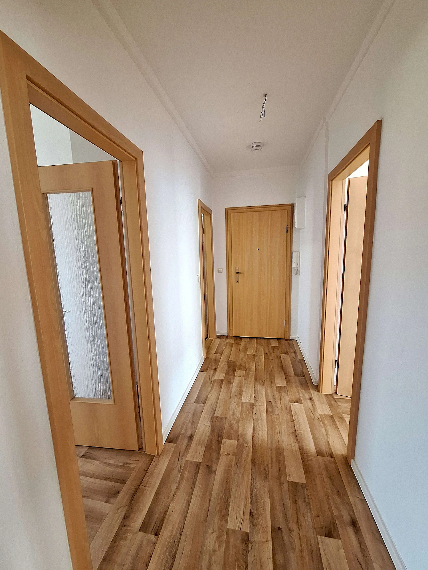 Diese hübsche 3-Raum-Wohnung ist bereits saniert und ab sofort bezugsfertig. Es erfolgte die Verlegung von PVC-Belag in Holzoptik, welcher ein warmes und gemütliches Ambiente verleiht. Dazu wurden passende Innentüren im Holzdekor eingebaut. Die weiß gestrichenen Tapeten geben den Räumen viel Licht und Freundlichkeit. Das Badezimmer ist raumhoch und modern gefliest sowie mit einer Wanne ausgestattet, welche zu erholsamen Schaumbädern in der kalten Jahreszeit einlädt. Die Elektro-Installation entspricht bereits den aktuellen Richtlinien. Der Waschmaschinenanschluss ist in der Küche vorgesehen.