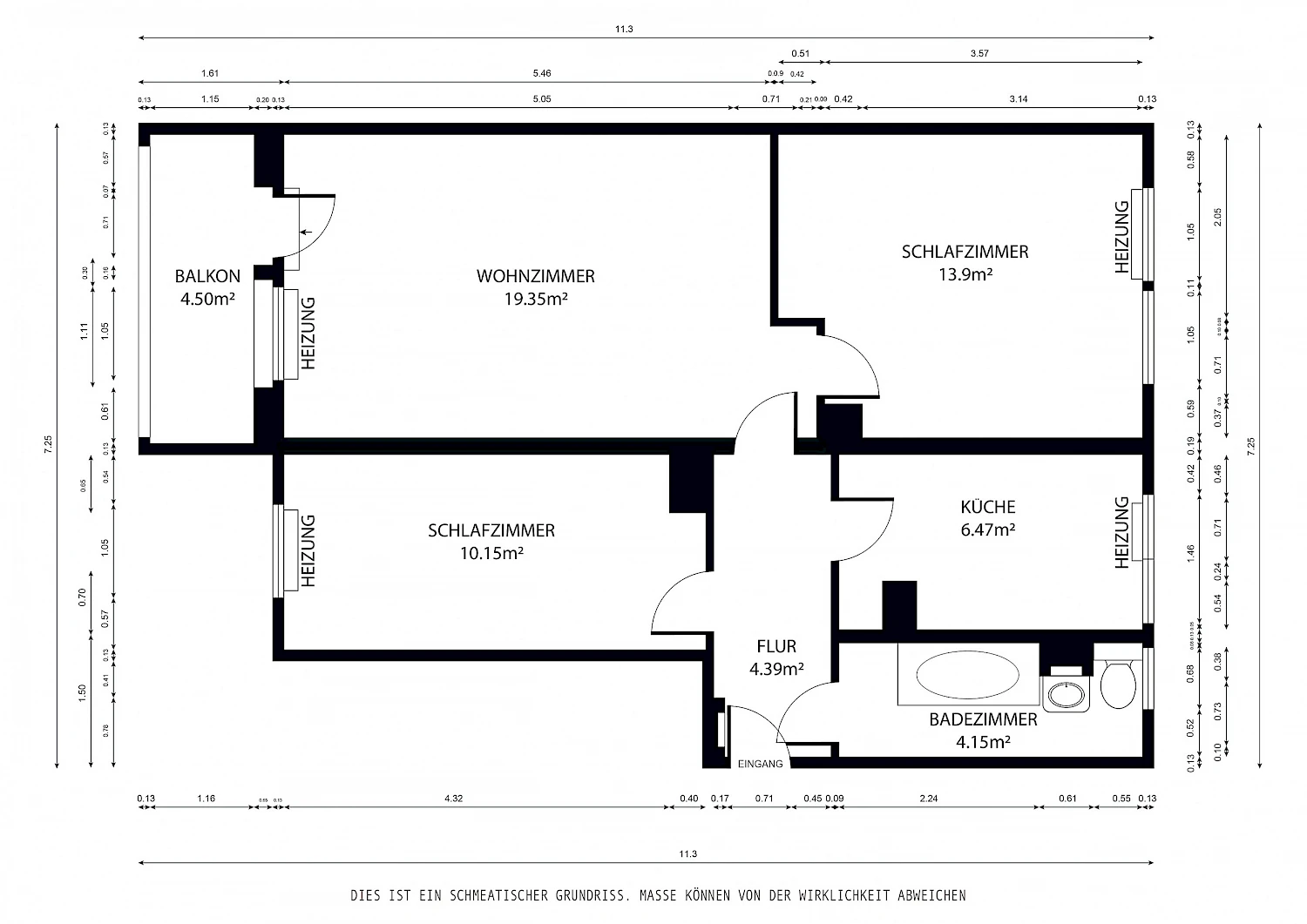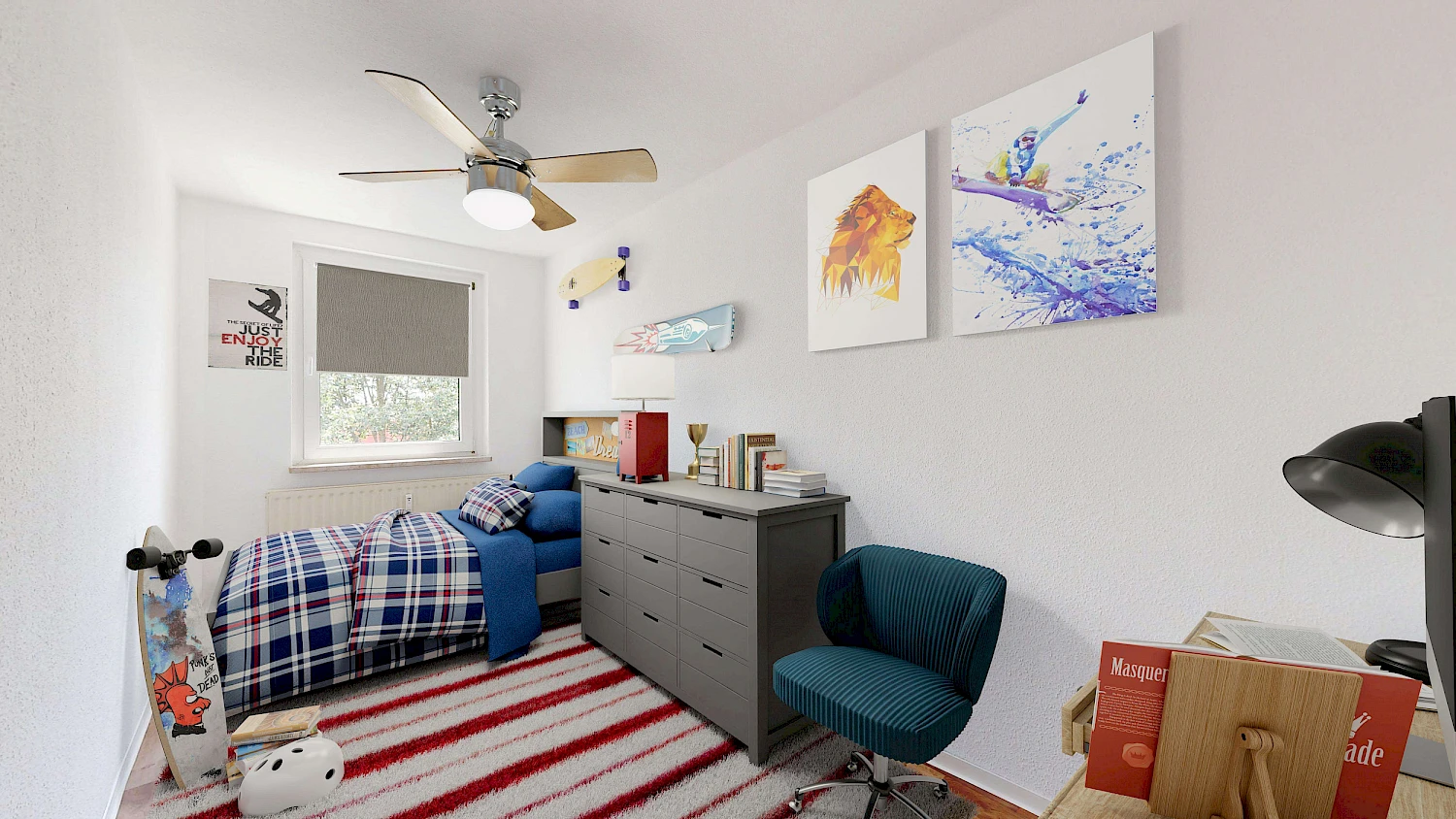 Man betritt den Flur, welcher Stellfläche für eine kleine Garderobe bietet. Von hier hat man Zugang zu allen weiteren Räumen der Wohnung, welche alle über ein Tageslichtfenster verfügen. Das Kinder- sowie Wohnzimmer mit angrenzendem Balkon sind südwestlich ausgerichtet und profitieren von der Nachmittagssonne bis in die späten Abendstunden. Im Schlafzimmer, welches ausreichend Stellfläche für Bett und Kleiderschrank bietet, werdet ihr von der Morgensonne geweckt. Weiter geht‘s in Küche und Badezimmer. Diese Räume sind ebenfalls östlich ausgerichtet.