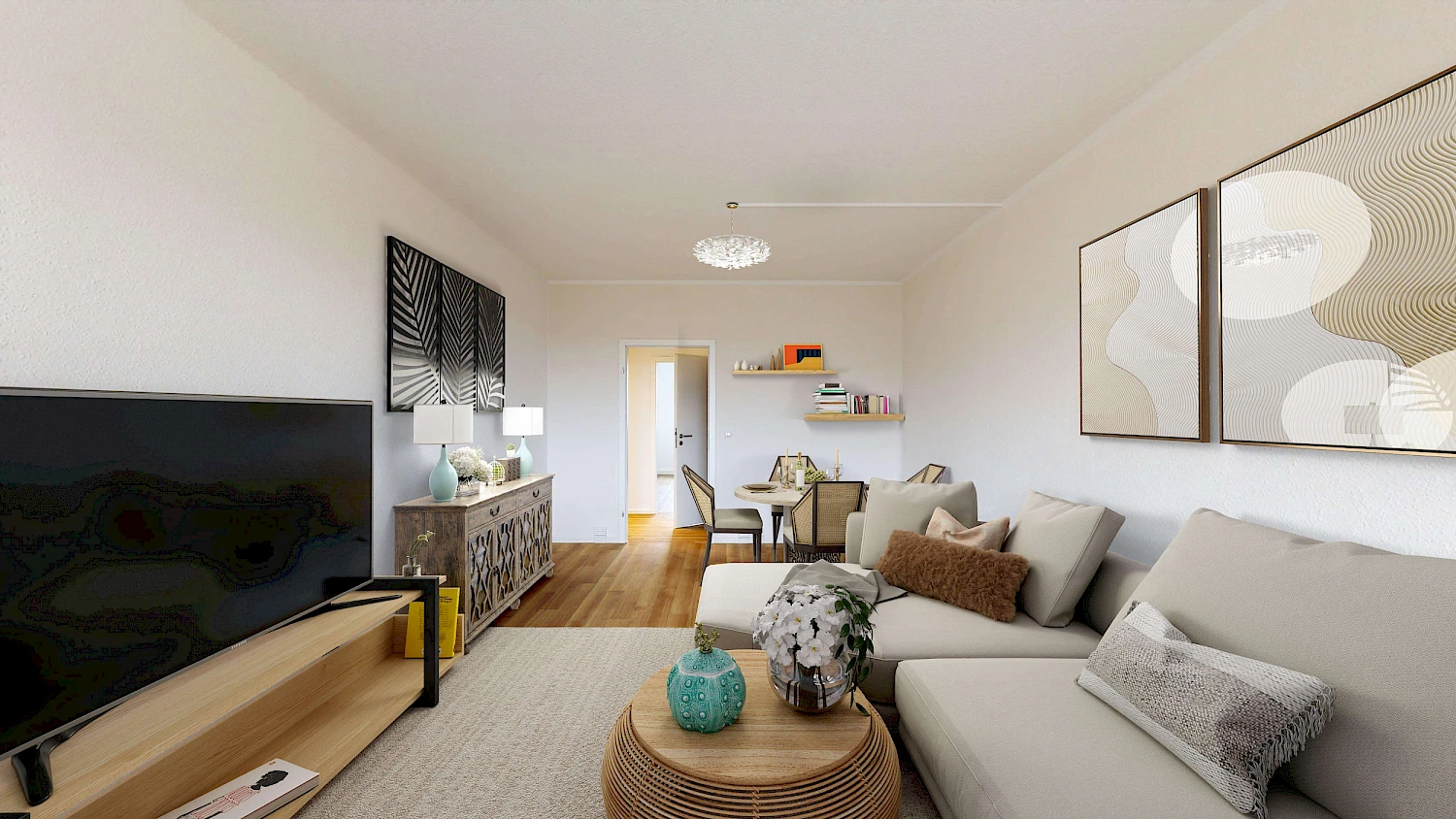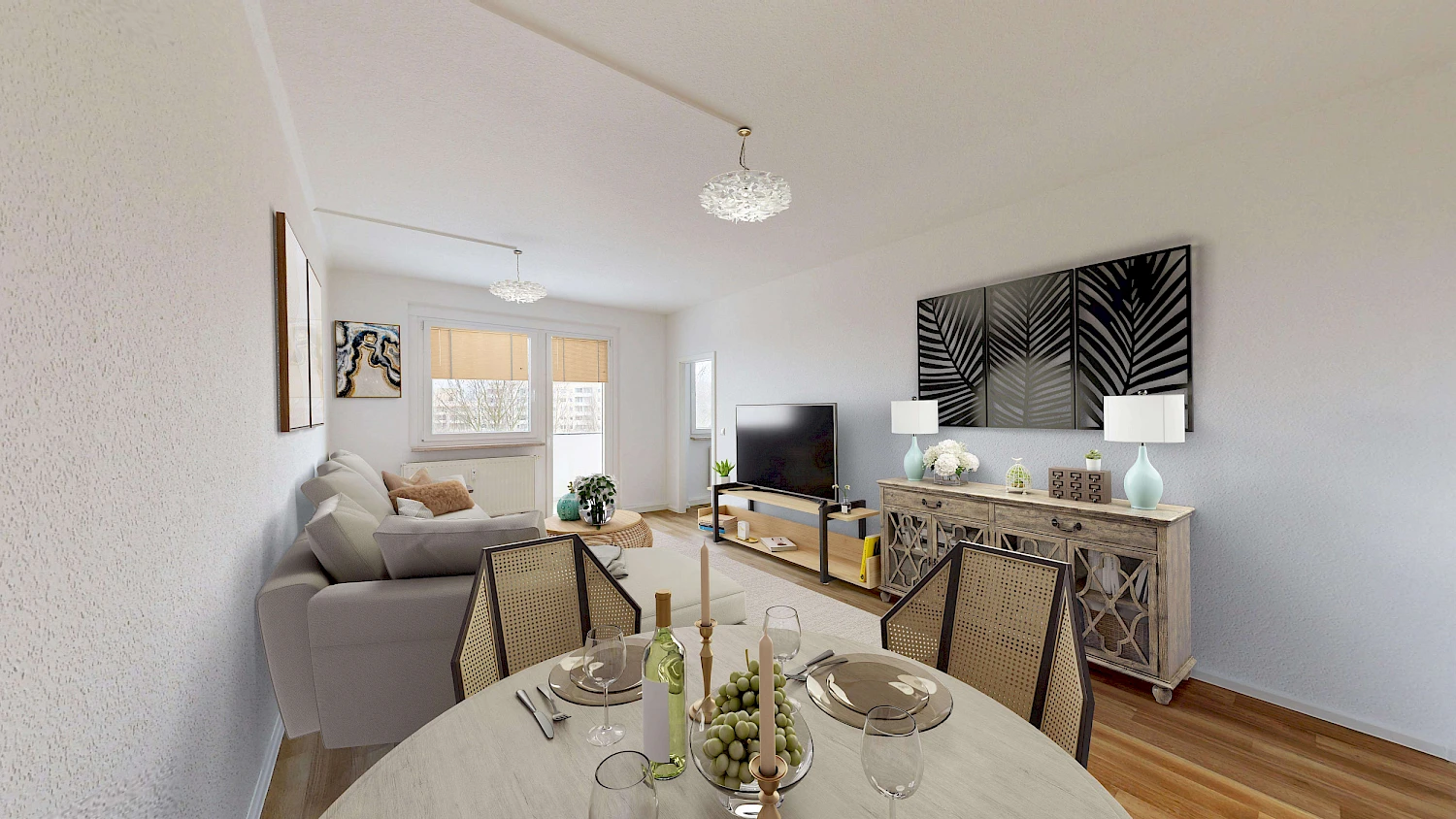 Achtung! Da es sich um eine noch zu sanierende Wohnung handelt, wurden zur Veranschaulichung Fotos von vergleichbarem Wohnraum hochgeladen. Es handelt sich lediglich um Beispielbilder. Um euch eine bessere Vorstellung der möglichen Gestaltung und Einrichtungsmöglichkeiten zu vermitteln, haben wir die Wohnung für euch virtuell möbliert. Die Wohnung wird unmöbliert vermietet.