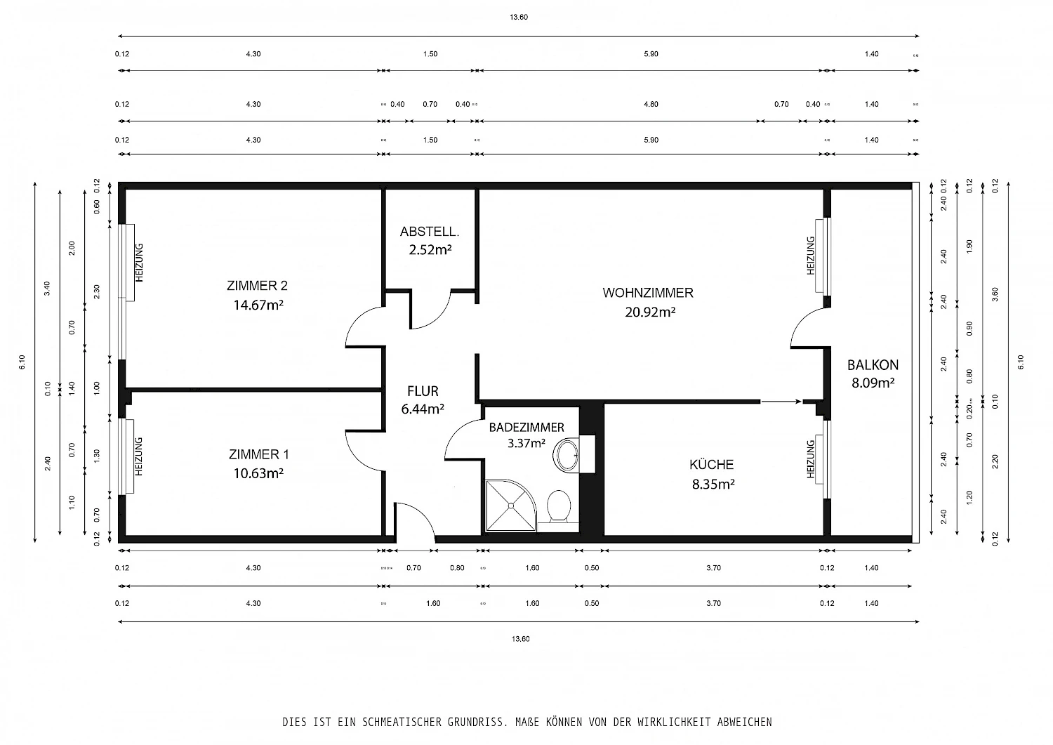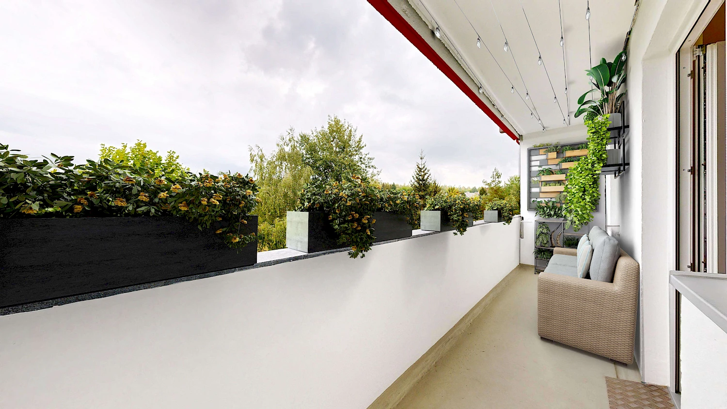 Wir starten den Rundgang im geräumigen Flur, welcher viel Stauraum für eine Garderobe bietet und im hinteren Bereich auch abgeteilt werden kann, um Stauraum zu schaffen. Schlaf- sowie Kinderzimmer befinden sich auf der schattigeren Seite und sind nach Nordosten gerichtet. Beide Räume sind großzügig angelegt und bieten perfekte Rückzugsmöglichkeiten zur Erholung und Entspannung nach einem langen Tag. Zur sonnigen Südwest-Seite gerichtet befindet sich das Wohnzimmer inkl. geräumiger Loggia sowie die Küche, welche mit einem Tageslichtfenster ausgestattet ist. Der geräumige Wohnbereich lädt zum Wohlfühlen ein und auf der großen Loggia lässt es sich super chillen und den Tag ausklingen. Das Badezimmer ist innenliegend und mit einer Badewanne ausgestattet.