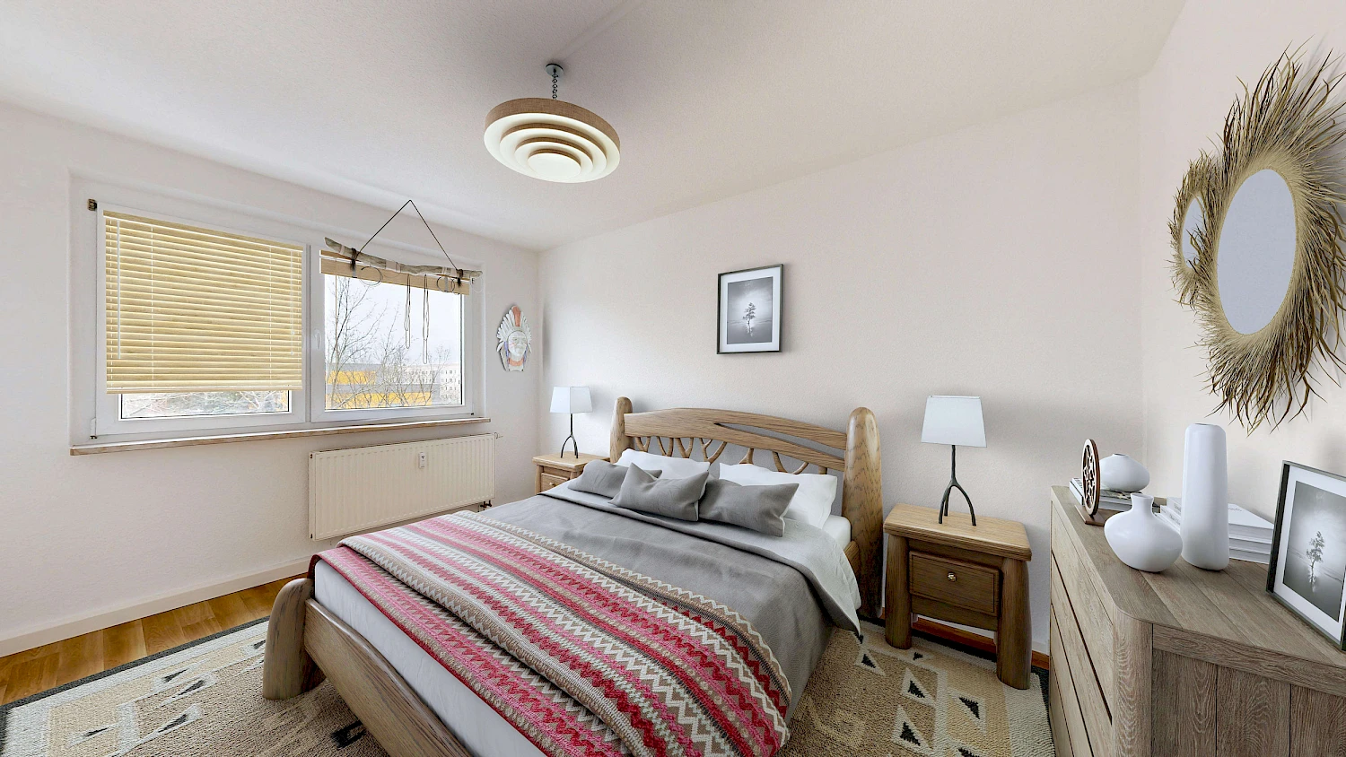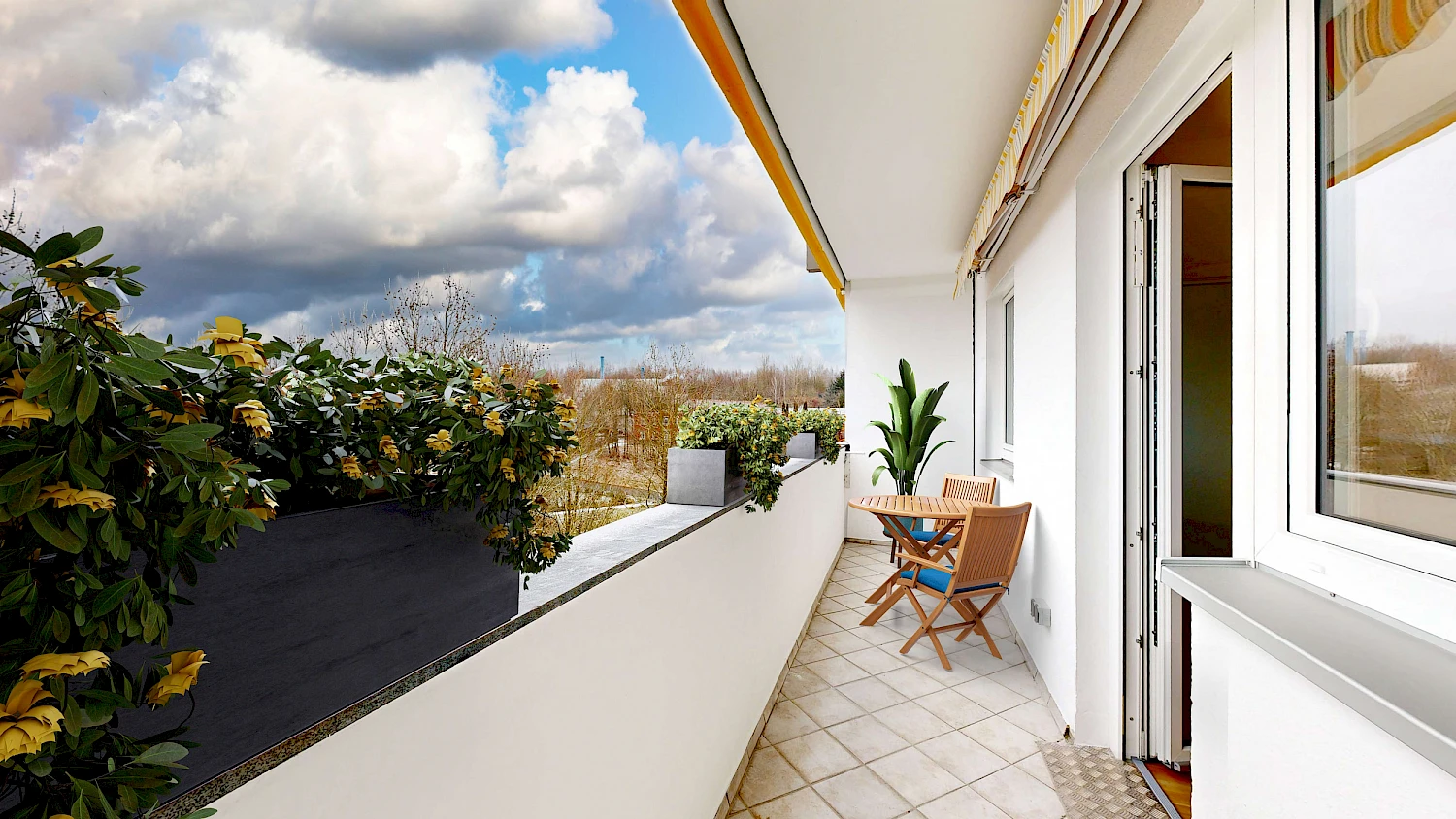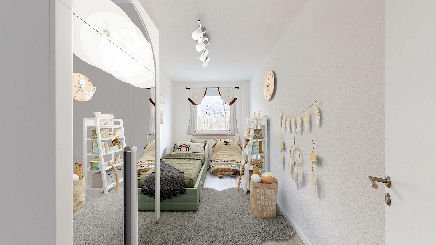 Man betritt die Wohnung über den geräumigen Flur, welcher viel Stauraum für eine Garderobe bietet. Schlaf- sowie Kinderzimmer befinden sich auf der schattigeren Seite und sind nach Norden gerichtet. Beide Räume sind großzügig angelegt und bieten perfekte Rückzugsmöglichkeiten zur Erholung und Entspannung nach einem langen Tag. Zur sonnigen Südost-Seite gerichtet befindet sich das Wohnzimmer inkl. geräumiger Loggia sowie die Küche, welche mit einem Tageslichtfenster ausgestattet ist. Der geräumige Wohnbereich lädt zum Wohlfühlen ein und auf der sonnigen Loggia lässt es sich super chillen. Das Badezimmer ist innenliegend und mit einer Wanne ausgestattet.