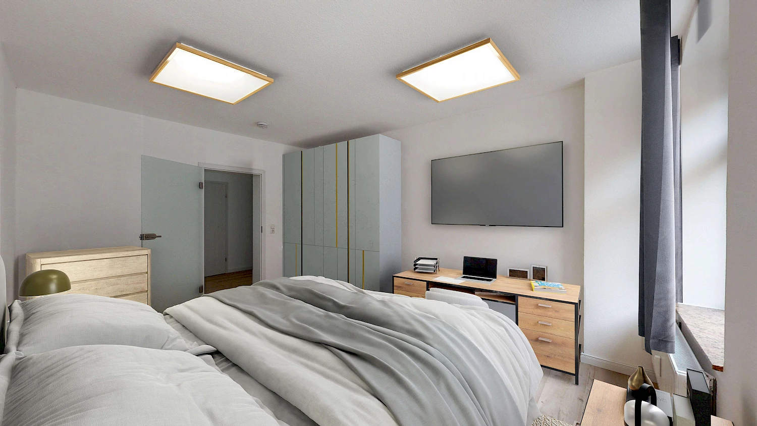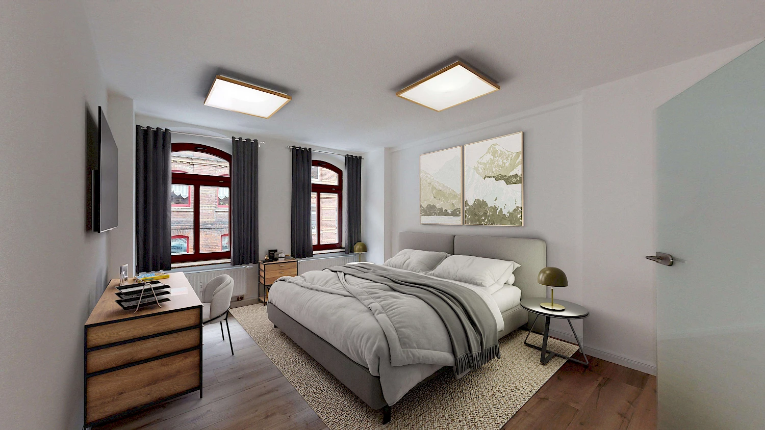ACHTUNG! Um euch eine bessere Vorstellung der möglichen Gestaltung und Einrichtungsmöglichkeiten zu vermitteln, haben wir die Wohnung für euch virtuell möbliert. Es handelt sich lediglich um Beispielbilder.