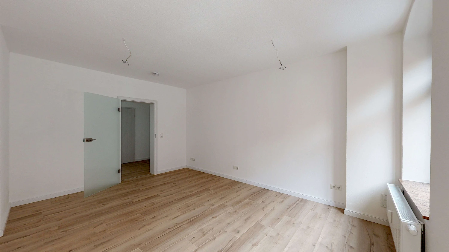Die Wohnung wurde 2023 aufwändig und hochwertig saniert und präsentiert sich in einem absolut neuwertigen Zustand. Dies findet ihr bestimmt kein zweites Mal in Reichenbach. Die Wohnung wurde hauptsächlich mit hochwertigem Vinylbelag in Holzoptik saniert. Zudem erfolgte die komplette Erneuerung der Elektroinstallation. Die Renovierung der Wohnung erfolgte mit glatter, weiß gestrichener Vliestapete. Außerdem wurden helle Innentüren eingebaut, um den modernen Charakter der Wohnung zu unterstreichen. Das Bad wurde modern gefliest und ist mit einer Flachdusche ausgestattet. Zusätzlich ist hier auch Platz für eine handelsübliche Waschmaschine.