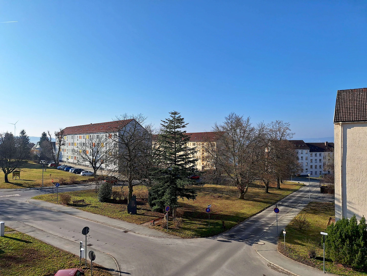Das Objekt befindet sich im zentralen Teil des beliebten Wasserturmgebietes, umgeben von gepflegten Grünanlagen. Einkaufsmöglichkeiten, wie z.B. das Kaufland sowie Bushaltestelle, Lieblingsapotheke und das Eiscafé Roßberg sind fußläufig erreichbar, ebenso der Sportplatz „Am Stadion“ beim Wasserturm. Auch nicht weit entfernt kann man im Alten Reichenbacher Stadtpark Erholung finden und spazieren gehen. Ebenfalls befinden sich diverse Kindertagesstätten in der Nähe.