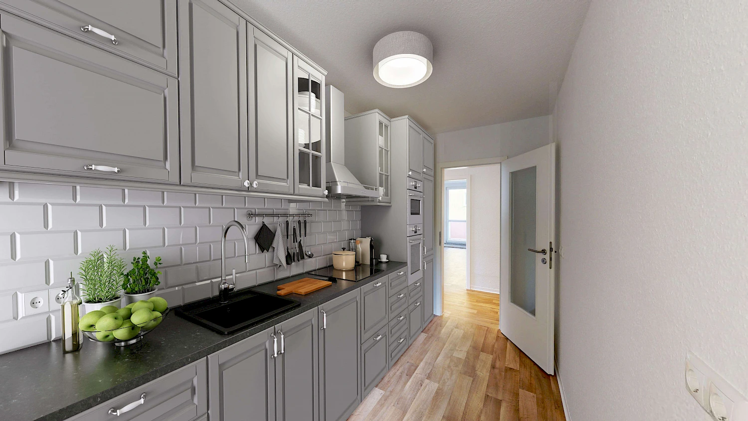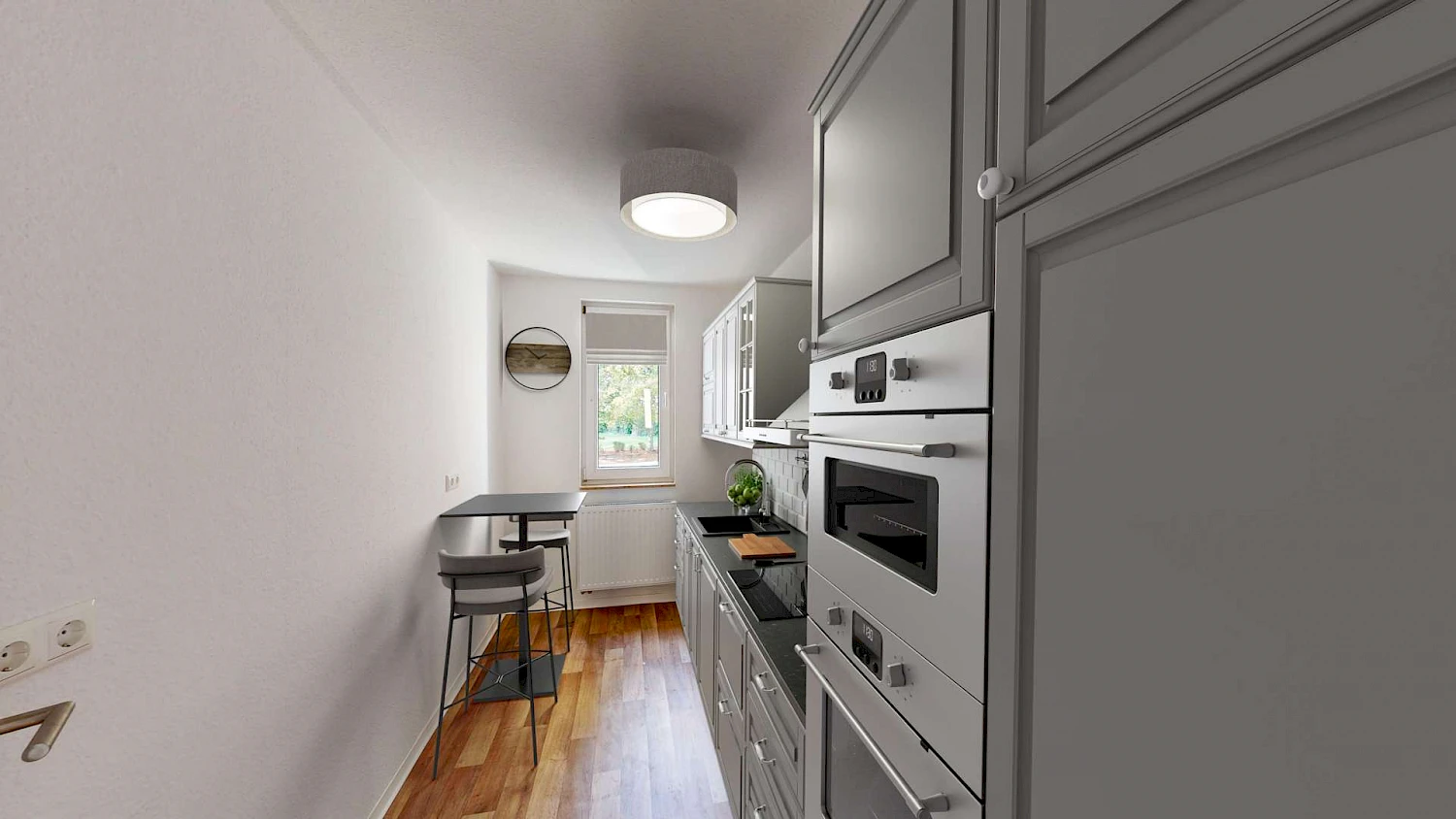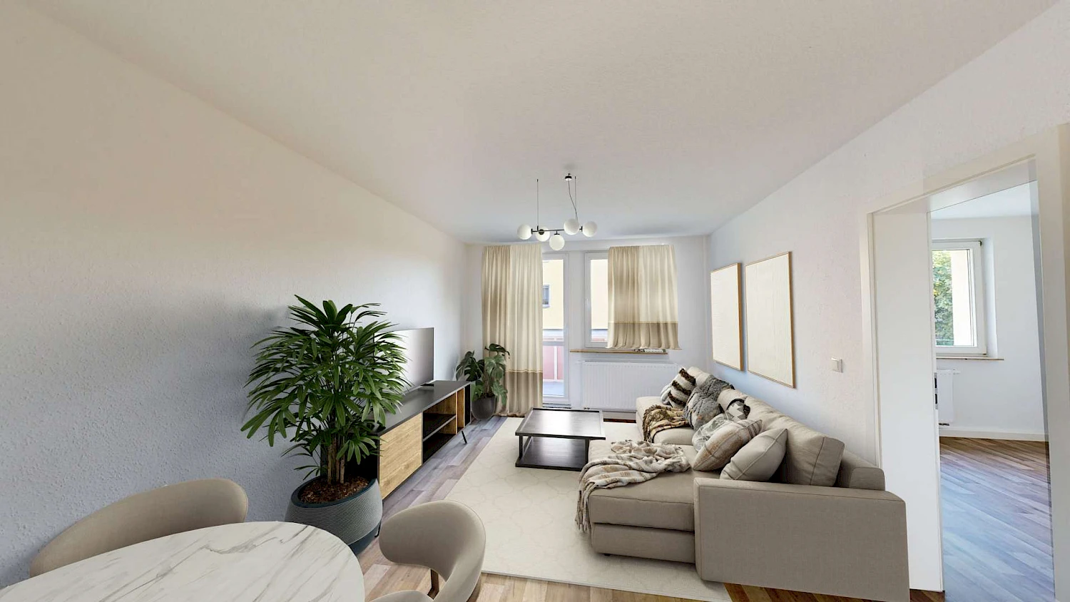 Achtung! Da es sich um eine noch zu sanierende Wohnung handelt, wurden zur Veranschaulichung Fotos von vergleichbarem Wohnraum hochgeladen. Es handelt sich lediglich um Beispielbilder. Um euch eine bessere Vorstellung der möglichen Gestaltung und Einrichtungsmöglichkeiten zu vermitteln, haben wir die Wohnung für euch virtuell möbliert. Die Wohnung wird unmöbliert vermietet.